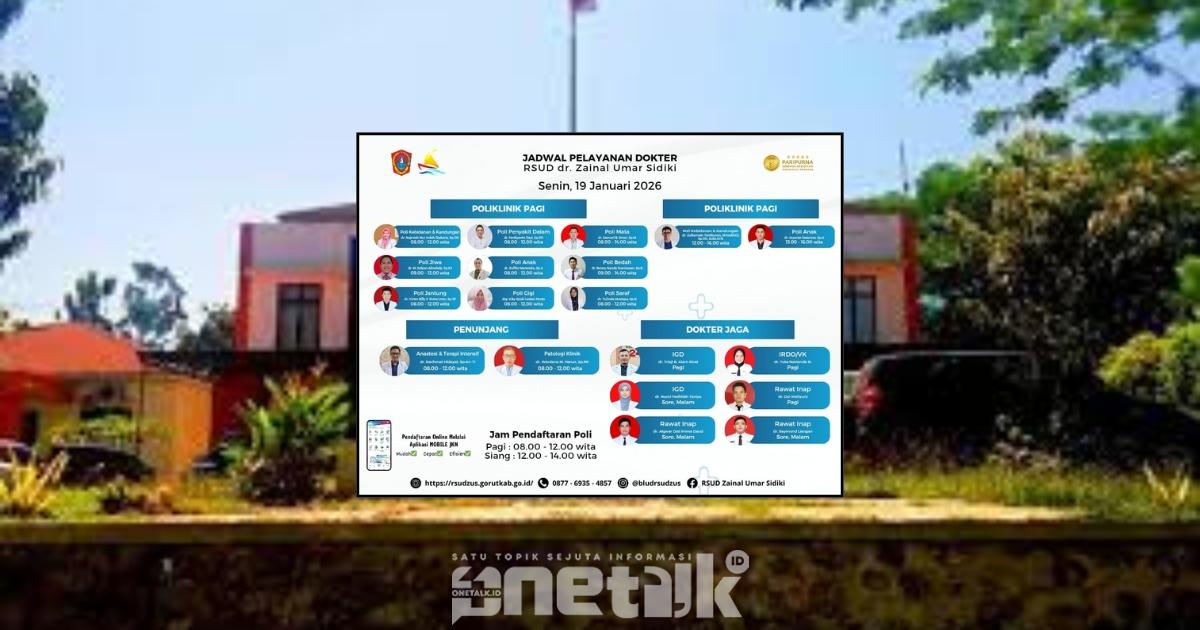 Gorontalo Utara – Setiap pagi di rumah sakit selalu ada cerita yang sama namun tak pernah benar-benar serupa. Ada pasien yang datang lebih awal dengan wajah penuh harap, ada keluarga yang setia mendampingi sambil menahan cemas, dan ada doa-doa kecil yang dipanjatkan di ruang tunggu. Memahami situasi itulah, manajemen RSUD dr. Zainal Umar Sidiki mengumumkan jadwal pelayanan dokter untuk Senin, 19 Januari 2026, sebagai bentuk kepastian bagi masyarakat yang membutuhkan layanan kesehatan.