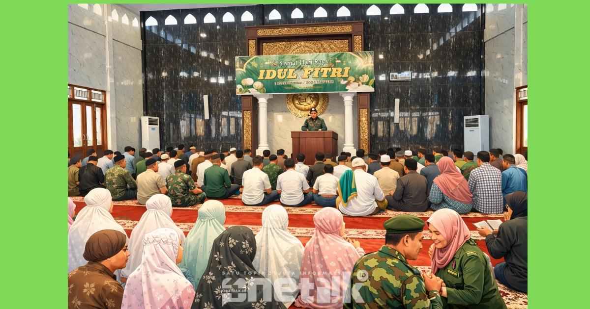 GORONTALO – Dalam balutan pagi yang suci dan penuh keberkahan, ratusan jamaah memadati Masjid Permata di lingkungan Markas Komando Resor Militer (Makorem) 133/Nani Wartabone. Prajurit, Aparatur Sipil Negara (PNS), Ibu Persit, serta masyarakat sekitar larut dalam kekhusyukan pelaksanaan Shalat Idul Fitri 1 Syawal 1447 Hijriah, Sabtu (21/3/2026).